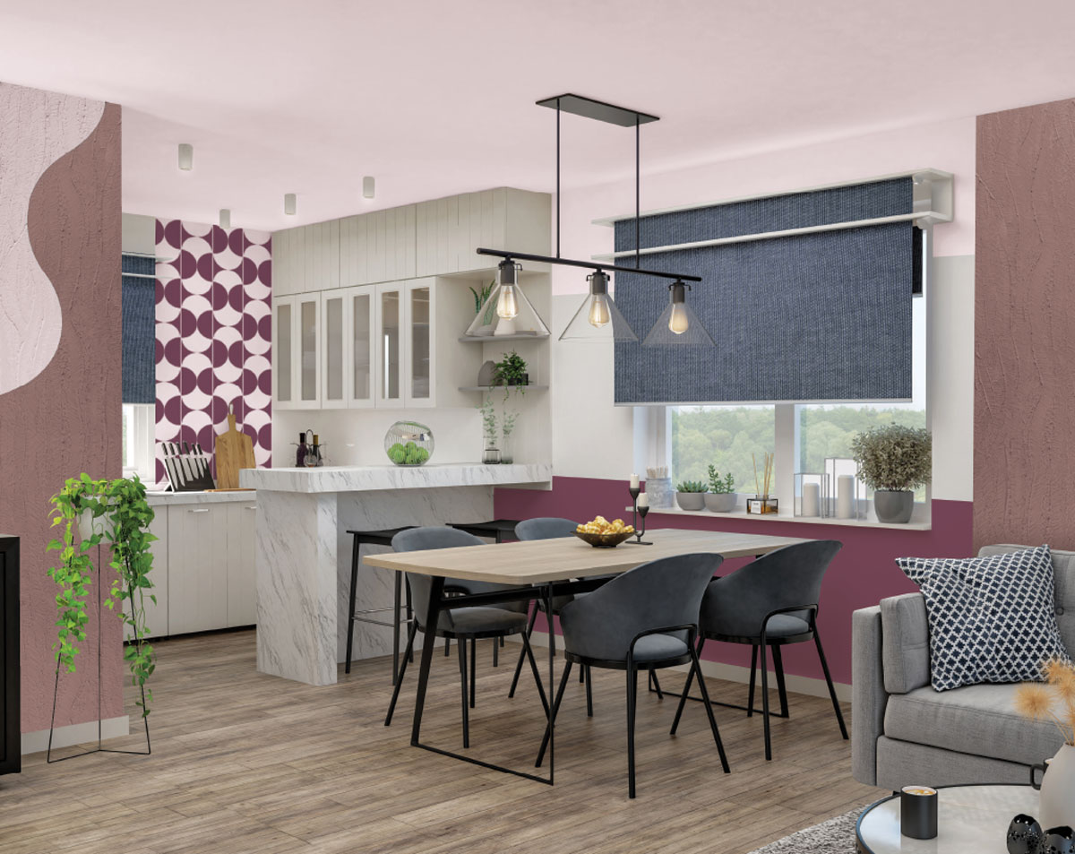 ¿Quieres sorprender a tu familia con un renovado espacio en el comedor? ¡Mezcla colores! Lograr ese brillo aplicando en tus muros Vinimex TOTAL® Antiviral y Antibacterial, que posee un máximo poder cubriente de fácil aplicación y seca en 20 minutos al tacto. Para un acabado perfecto, usa Brocha Azul.
